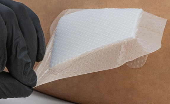 Hydrocolloid dressings are also an option for sensitive skin. Their adhesive is relatively gentle and keeps the wound moist, reducing the pain of tearing during dressing changes. However, a problem with hydrocolloid dressings is that if they are left on for too long or if the skin sweats excessively, the edges may curl up, causing the adhesive to come into direct contact with healthy skin, which can cause redness in a few people. Therefore, it's advisable to cut a small piece and test it on healthy skin next to the wound for a few hours. If there are no problems, then it can be used more extensively.